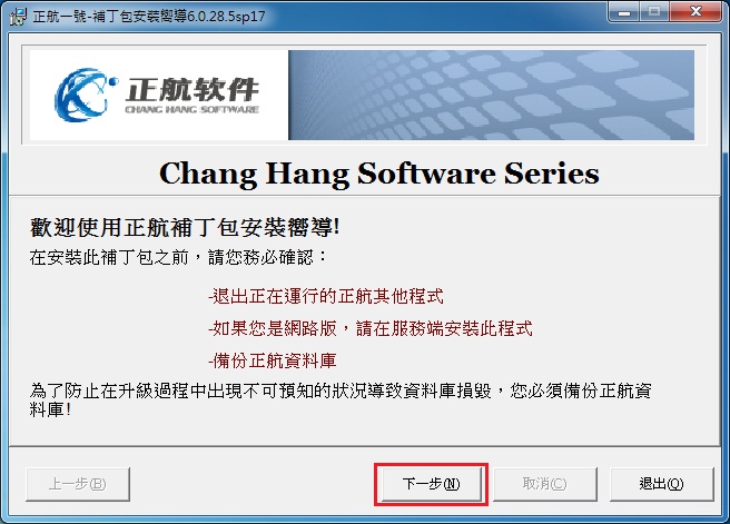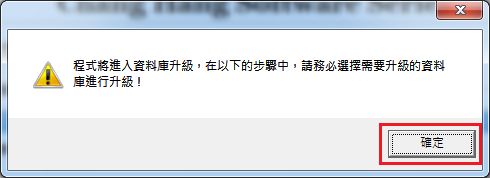 為防止升級過程中出現不可預知的狀況導致資料庫損毀請備份您的公司資料庫