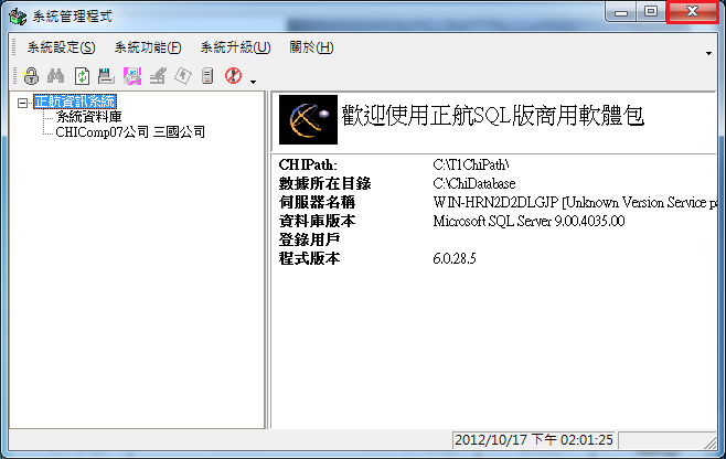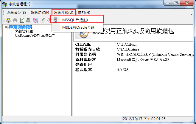 進到系統管理程式畫面à選擇系統升級àMSSQL升級