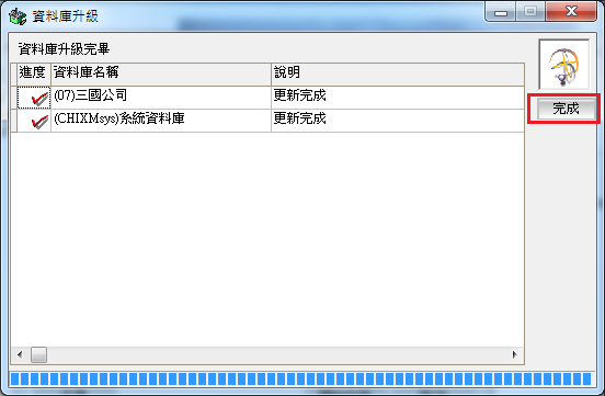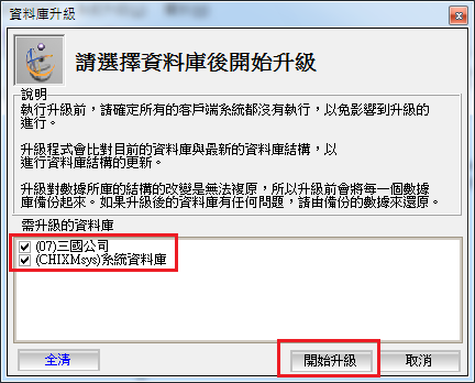 勾選(07)三國公司和 (CHIXMsys)系統資料庫à開始升級