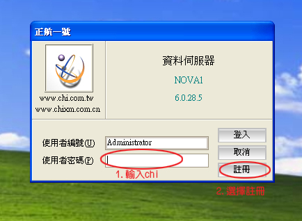 1. 先請輸入使用者密碼 (chi或者輸入自行變更過的密碼),再選擇註冊。