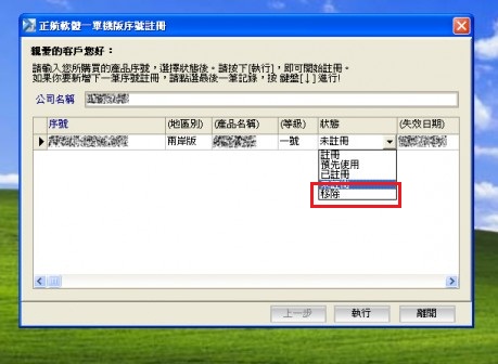 3. 此步驟會自動出現您之前註冊的訊息,請將狀態選為移除,再選執行