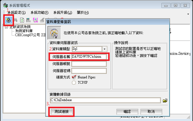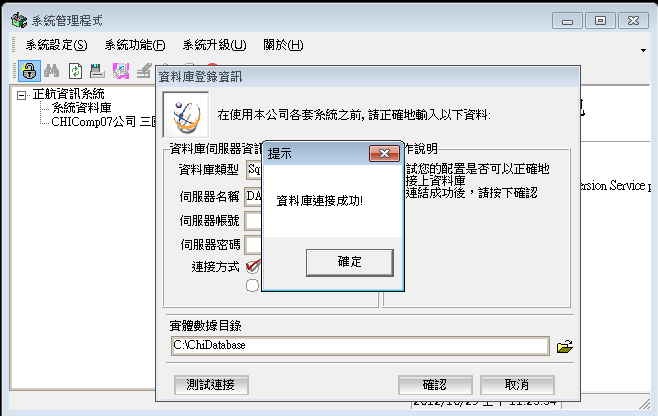 5. 如出現資料庫連接成功 表示完成 即可重新開啟正航