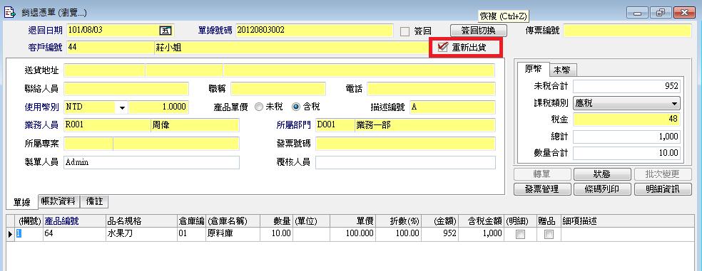 銷貨後產品存在問題,可能發生以下三種處理狀況: