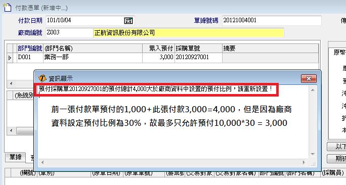 卓爾資訊-正航ERP系列-2012年10月--廠商預付比例