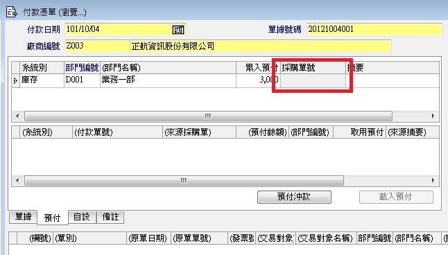 二、 若不要控管,則不要填入採購單號即可不受預付比例控款!