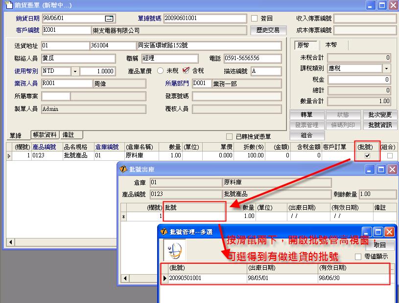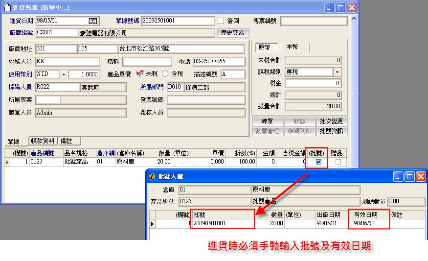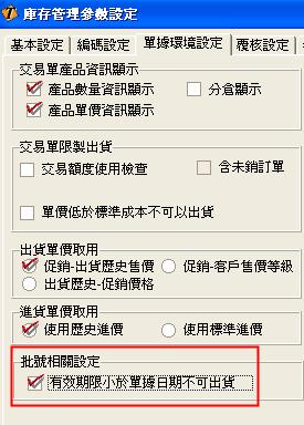 假設公司的產品為食品或藥妝用品,每次進貨時,有不同的批號,必須要控管有效期限,若超過有效期限則不得出貨,在正航軟體中如何應用? | |||||||||||||||||||||||||||||||