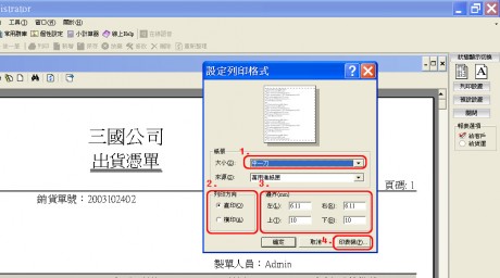 5.開啟正航一號,登入後選擇一張需要用中一刀模式列印的單據,選擇』列印』,開啟列印視窗後選擇』預覽』