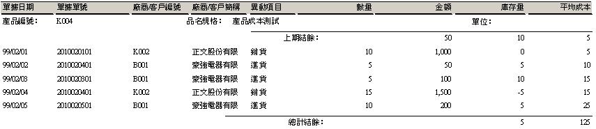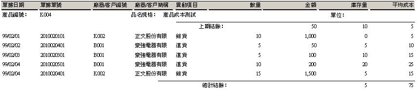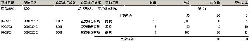 備註:該交易產品單價&現行總成本,不會在期初期末存量明細表中出現,在此是特別標出方便了解成本計算方式使用。