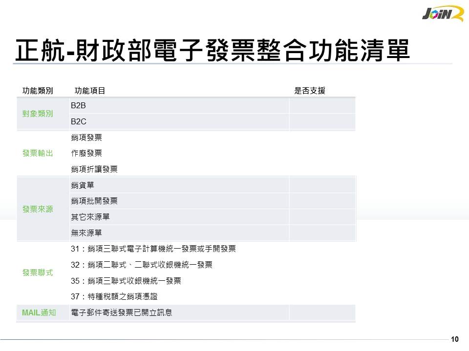 支持財政部推動電子發票,正航資訊於正航系列產品同步推出電子發票模組,可和正航系統連結,快速上線。