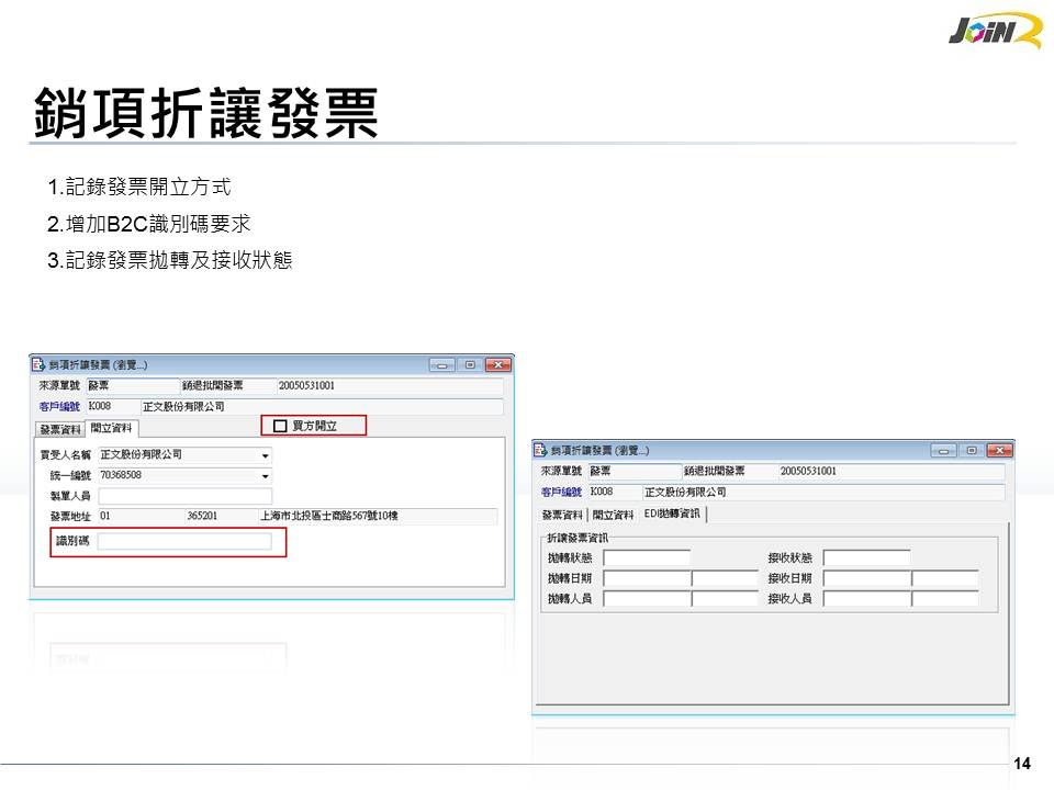 1.若您使用的系統是向本公司購買的產品,有任何問題可利用此表單提問 2.填寫時請務必留下:(1)您的公司寶號(2)聯絡方式(3)問題內容 3.問題主旨可加註您使用的產品,我們將優先處理您的問題 4.我們會以電話或MAIL的方式回覆給您,若有其他因素,本公司將會保留回覆您的權利 5.我們會將回覆的內容留在網站上一段時間,如有需要可再回我們的網站查詢,但我們會定期清除較舊的問題 6.若您不希望讓其他人看到您的問題,也可以直接EMAIL給我們,來信請寄到 jservice@join2.com.tw