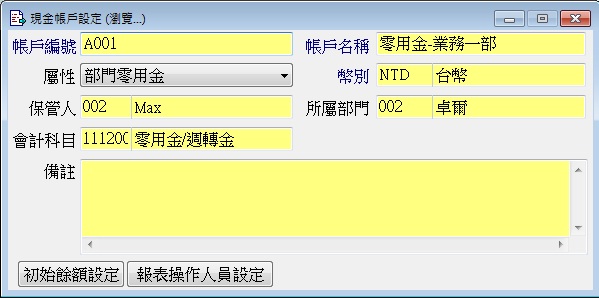 d. 屬性:可依需求選庫存現金 \ 部門零用金