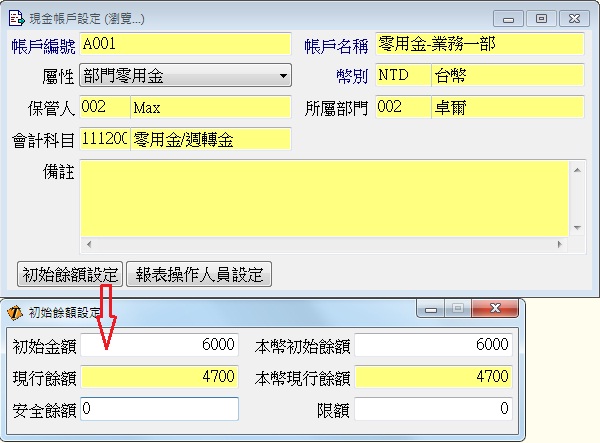 二、保存設定好現金帳戶後,建立帳戶餘額