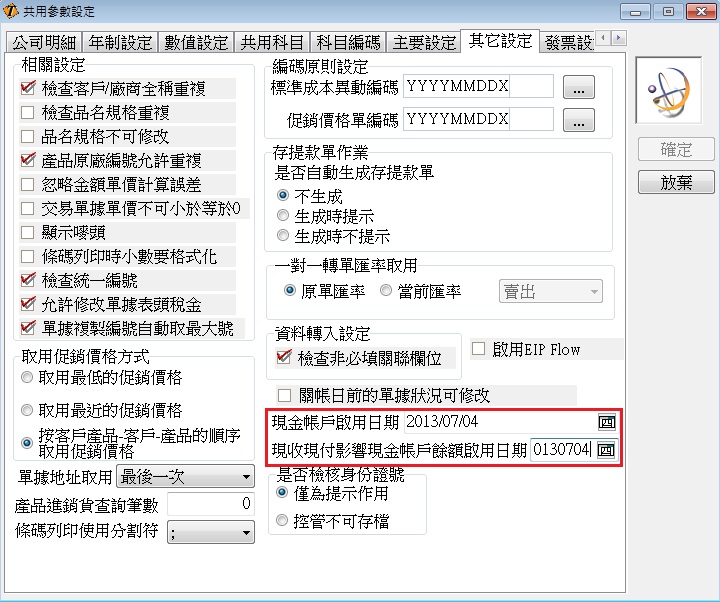 b. 現收現付影響現金帳戶餘額啟用日期(當收付款的金額是由零用金支付時,可以直接影響對應的現金帳戶的餘額)