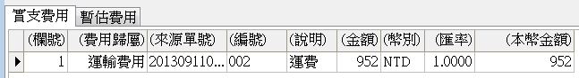 實支費用:來源於帳款系統中的費用單(費用的所屬類別,有運輸費用,其它費用和不分攤費用等三種,