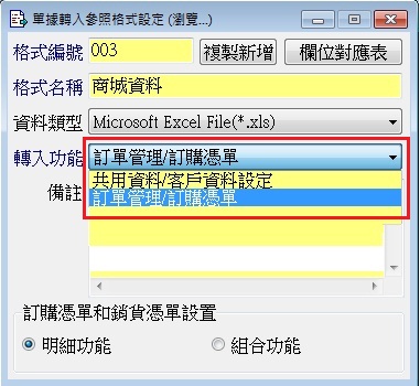 1.單據轉入參照格式設定,滿足不同通路訂單格式,並也可同時匯入客戶和會員資料