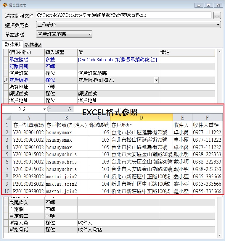 2.根據每種通路訂單Excel設定所需要的格式