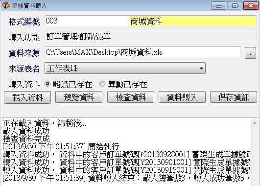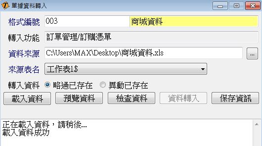 二、執行單據匯入