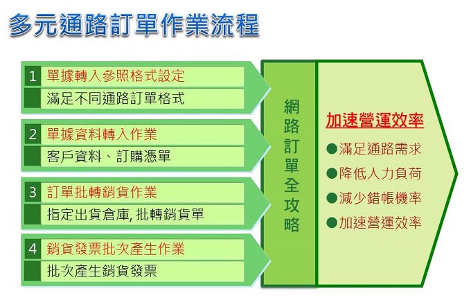 因此處理此一情境的需求,系統特別開發了此功能,提供各網路通路平台單據整合系統,滿足不同通路訂單格式。
