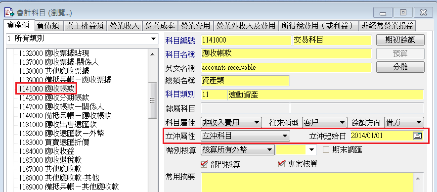 二、會計科目設定立沖屬性