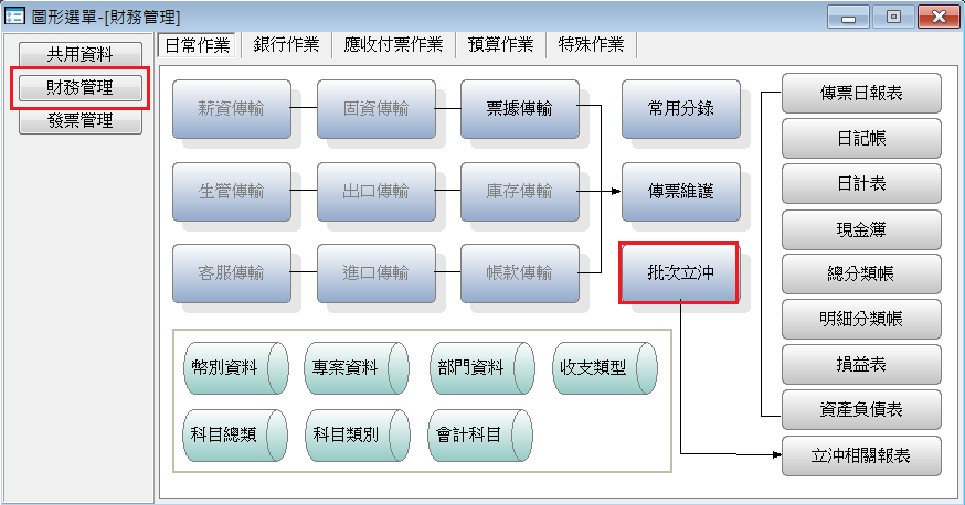 一、系統 > 財務管理 > 財務特殊作業 > 批次立沖作業