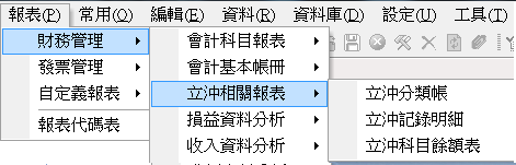 報表 > 財務管理 > 立沖相關報表